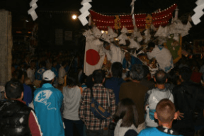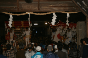 昭和54年に屋台造りのプロの手を一切得ずに、地元の大工の協力の下、地域の住民がみんなで協力し合って製作しました。
