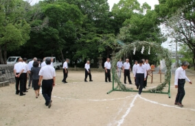 参道南の御旅所(海の傍)に一年に一度神様が御輿に乗りお出ましになり、氏子の安泰を授ける神事。